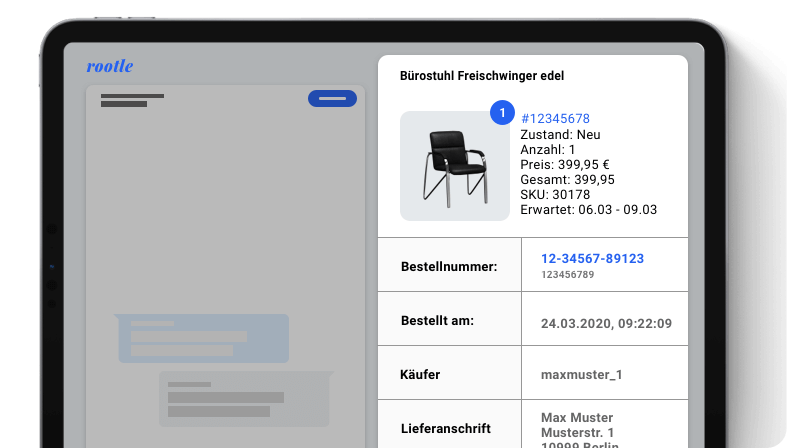 Spar dir langes Suchen in deinem Bestellverlauf. Rootle zeigt dir in jeder Nachricht die entsprechenden Bestellinformationen an. Dazu zählen neben den Produktinformationen auch die Versandinformationen und erwartete Lieferzeit.